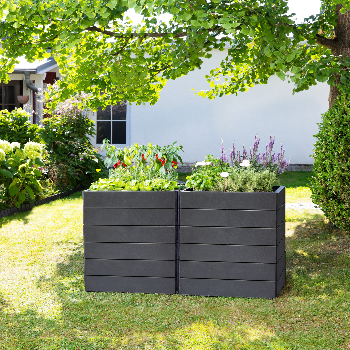 Bogate w składniki odżywcze wypełnienie grządek podwyższonych, np. kompostem i ziemią ogrodową, tworzy idealną pożywkę dla rosnących roślin. Wyższa temperatura gleby w grządce pozwala roślinom szybciej się rozwijać. Dzieje się tak zarówno dzięki bocznemu promieniowaniu słonecznemu, jak i rozkładowi poszczególnych warstw gleby. W grządkach podniesionych Ergo Quadro świetnie rozwijają się warzywa, owoce i zioła. Praktyczny kwadratowy kształt grządek Ergo Quadro daje wiele możliwości aranżacyjnych - wysokość i szerokość grządek można dopasować do swoich potrzeb.