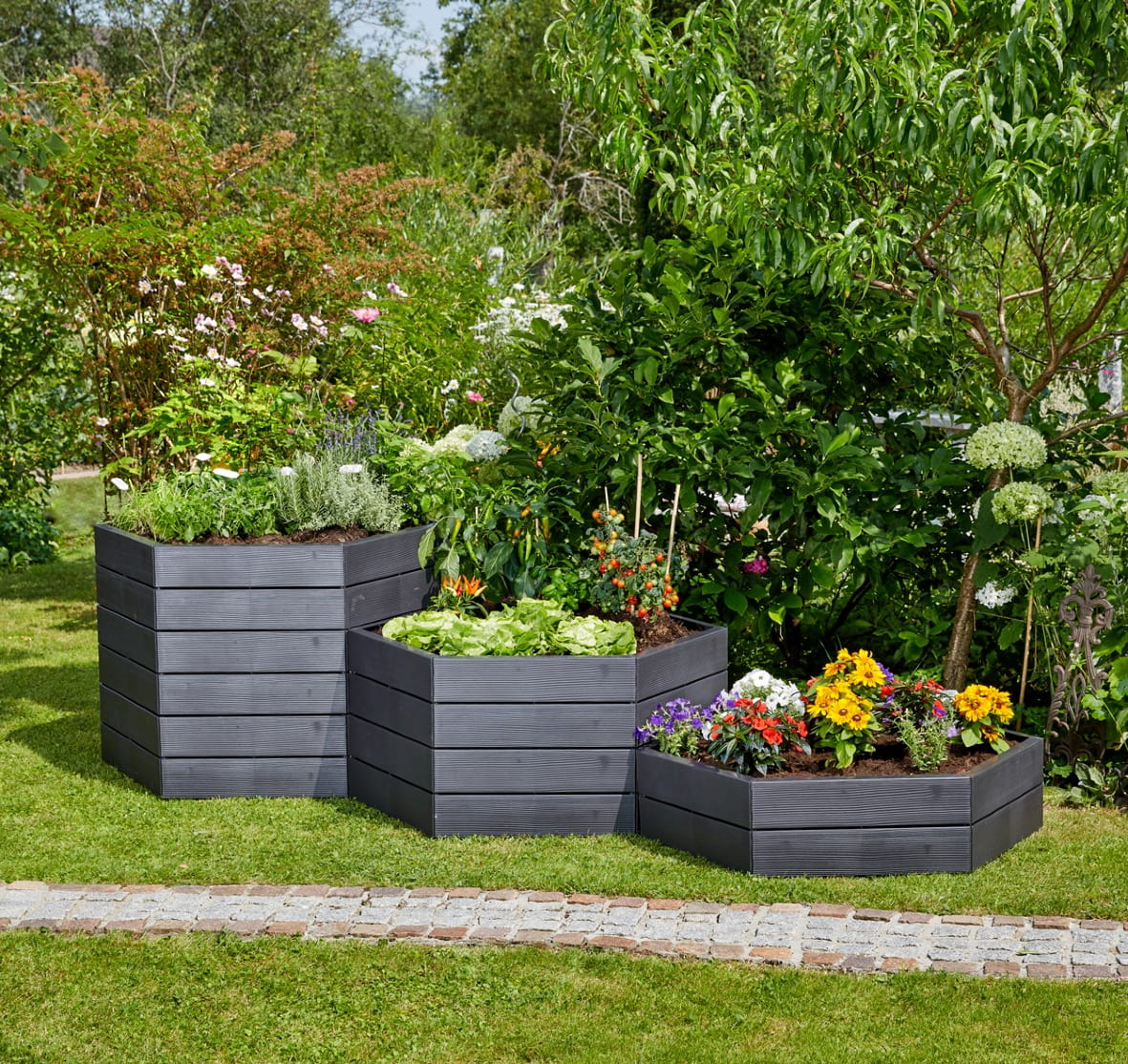 Bogate w składniki odżywcze wypełnienie grządek podwyższonych, np. kompostem i ziemią ogrodową, tworzy idealną pożywkę dla rosnących roślin. Wyższa temperatura gleby w grządce pozwala roślinom szybciej się rozwijać. Dzieje się tak zarówno dzięki bocznemu promieniowaniu słonecznemu, jak i rozkładowi poszczególnych warstw gleby. W grządkach podniesionych Ergo świetnie rozwijają się warzywa, owoce i zioła. Atrakcyjny kształt grządek Ergo daje wiele możliwości aranżacyjnych - wysokość i szerokość grządek można dopasować do swoich potrzeb.