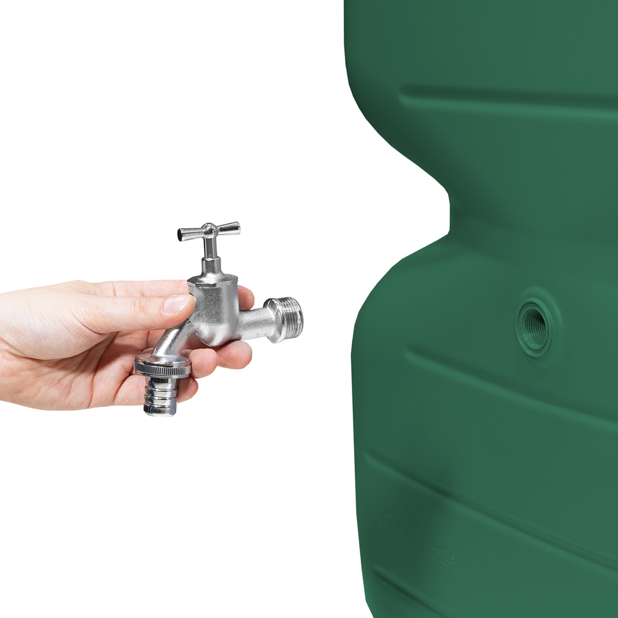 Zbiornik na deszczówkę Cubus posiada trzy zintegrowane przyłącza gwintowane 19 mm (3/4") do poboru wody: