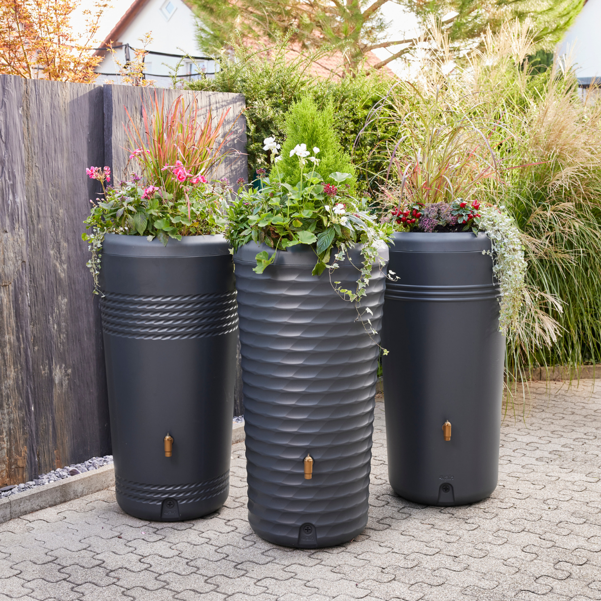 Szeroką gamę zbiorników na deszczówkę naziemnych uzupełnia dodatkowo bogaty wybór akcesoriów. Natomiast niektóre zbiorniki posiadają również dopasowaną donicę przystosowaną do sadzenia roślin, co umożliwia stworzenie pięknej kompozycji kwiatowej w ogrodzie.