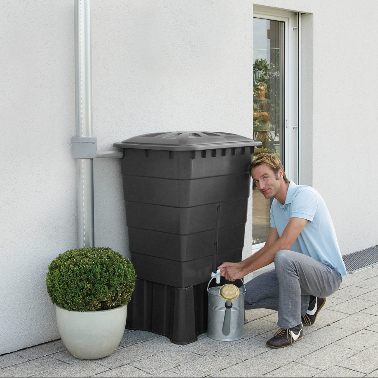 - Dzięki pokrywie i kranowi zbiornik na wodę deszczową stanowi najprostsze i najwygodniejsze rozwiązanie dla gromadzenia wody deszczowej w ogrodzie