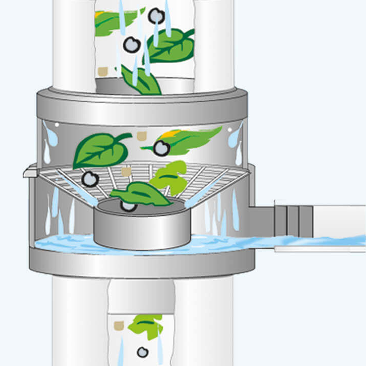 - Niezawodnie filtruje wodę z większych zanieczyszczeń (np. z liści)