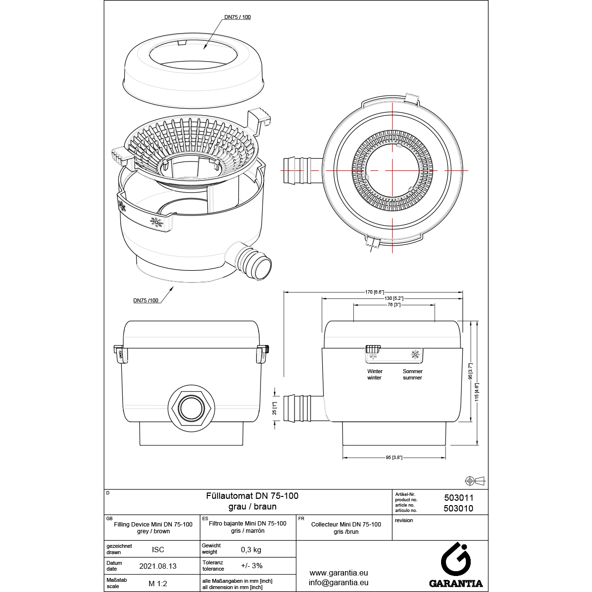 - Zalecany do zbierania wody deszczowej z dachu o powierzchni max. 50 m²