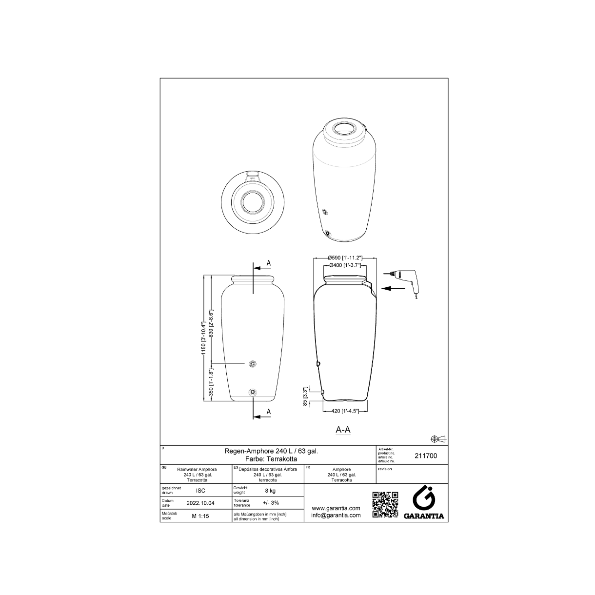- Zbiornik na deszczówkę Amfora 240l wykonany z materiałów pochodzących m. in. z recyklingu