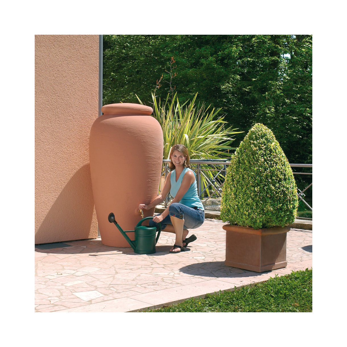 Szeroką gamę zbiorników na deszczówkę naziemnych uzupełnia dodatkowo bogaty wybór akcesoriów. Natomiast niektóre zbiorniki posiadają również dopasowaną donicę przystosowaną do sadzenia roślin, co umożliwia stworzenie pięknej kompozycji kwiatowej w ogrodzie.