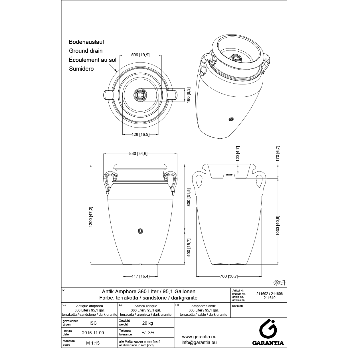 - Ponadto zbiornik na deszczówkę Amfora Antyczna ma 2 wysokiej jakości gwinty, umożliwiające montaż bez wiercenia