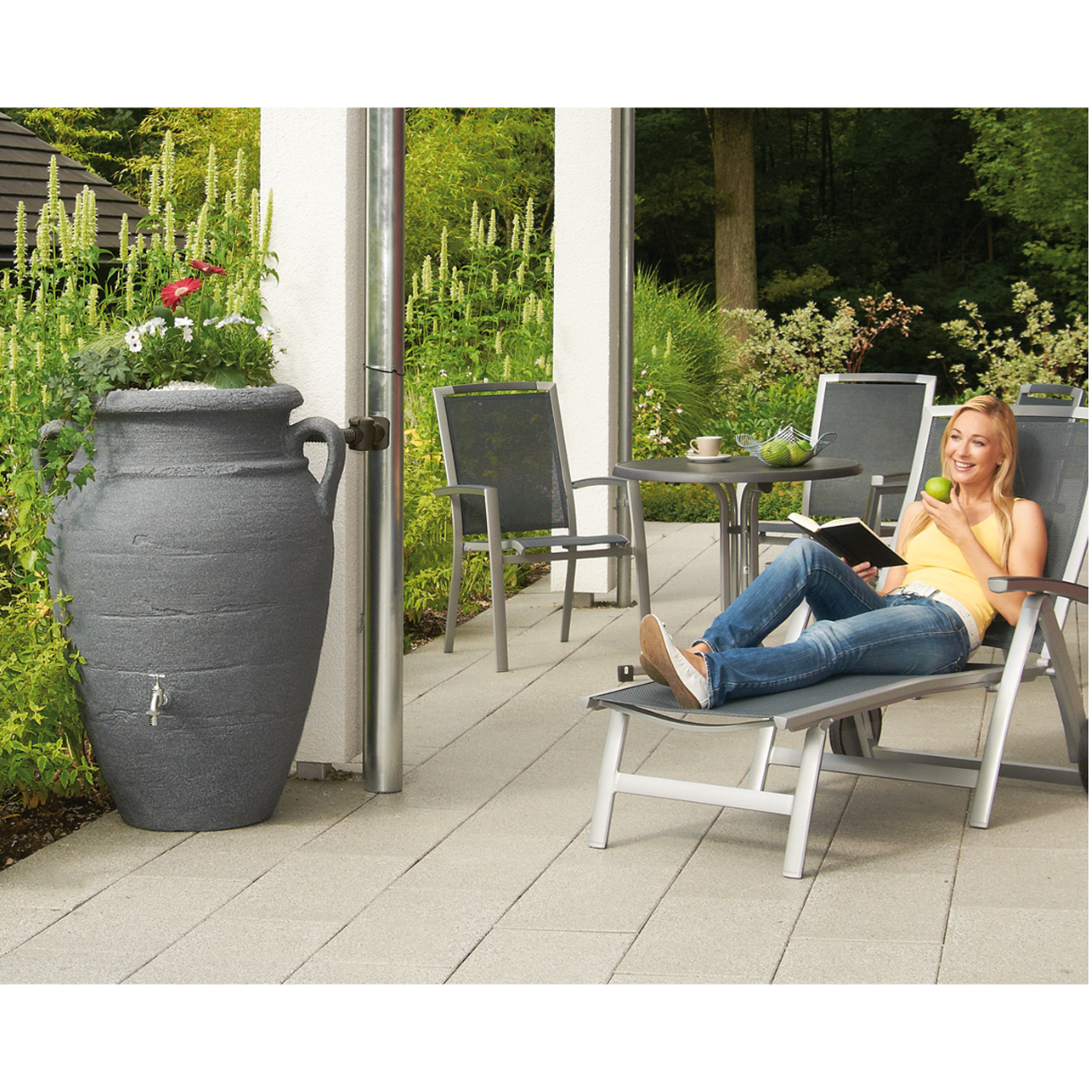 Szeroką gamę zbiorników na deszczówkę naziemnych uzupełnia dodatkowo bogaty wybór akcesoriów. Natomiast niektóre zbiorniki posiadają również dopasowaną donicę przystosowaną do sadzenia roślin, co umożliwia stworzenie pięknej kompozycji kwiatowej w ogrodzie.