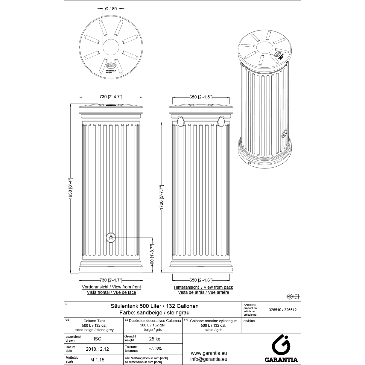 - Zbiornik na deszczówkę Kolumna ma klasyczne wzornictwo