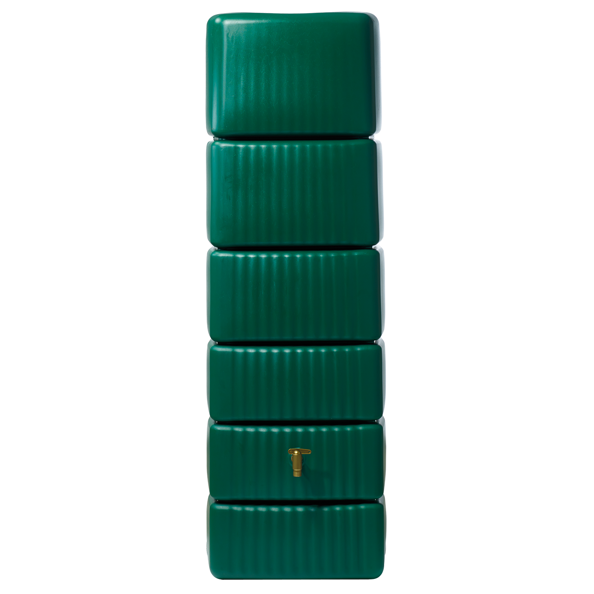- Zakres dostawy: Zbiornik Slim 330 l przyścienny w kolorze ciemnozielonym, zabezpieczenie przed wiatrem, kran Aqua-Quick z tworzywa sztucznego