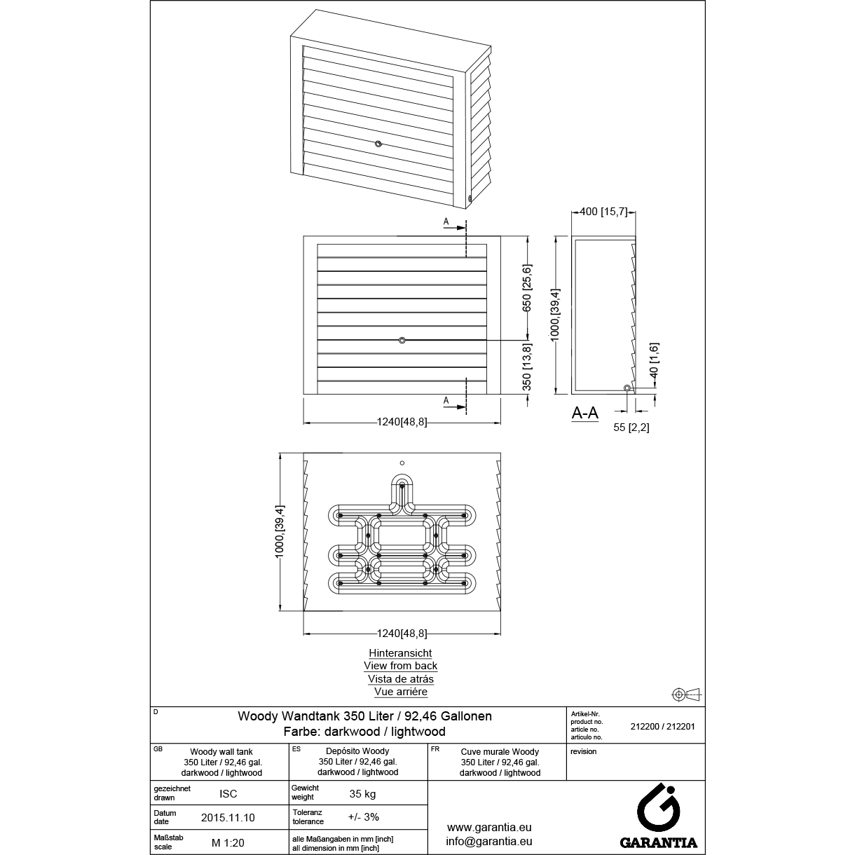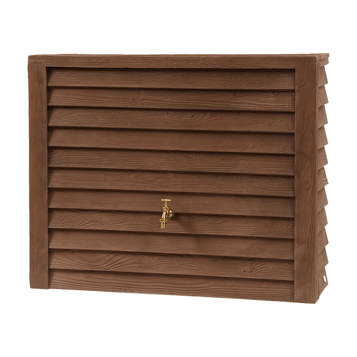 - Zbiornik na deszczówkę Woody 350 l występuje w dwóch kolorach: jasne drewno, a także ciemne drewno
